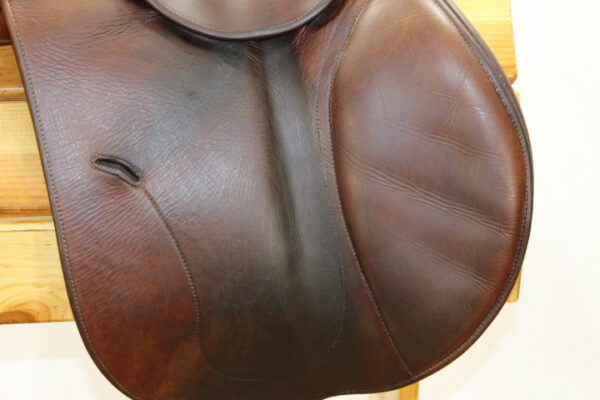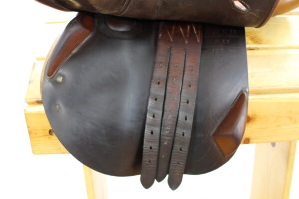 If you are looking for a FULL CALF French used saddle but don’t have the full calf, French used saddle budget then this beauty is exactly what you need! This lovely, GRIPPY and SUPER comfy Antares is offered for your consideration. It features a 17″ seat and 3A flaps that measure 13.5″ x 14″. The tree is 4.5″ and is made to fit A LOT of horses. There is a little bunching on one flap, but nothing noticeable while in the saddle.