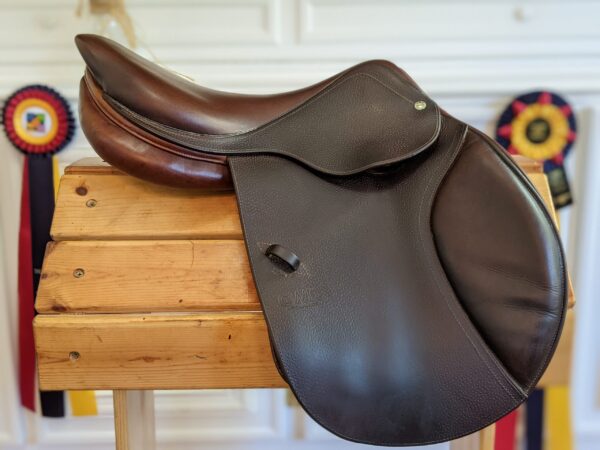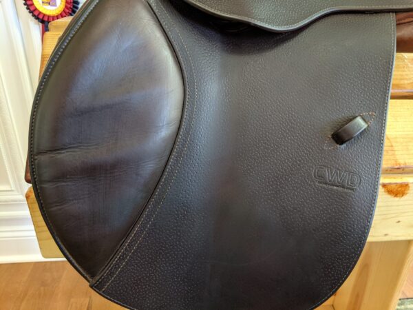Offered for sale – 2009 CWD SE02 (deep seat) 17″ with regular 2L flap and a regular 4.125″ tree. The flaps measure 13.5″ long by 13.25″ wide and are not super forward.