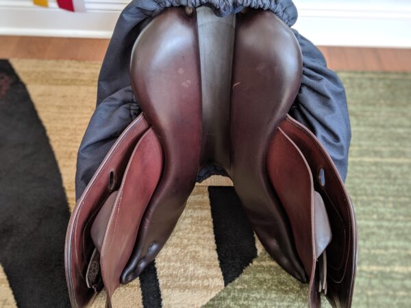 Wonderful 17″ Antares featuring sticky, grippy FULL buffalo leather. Generous 4.5″ tree. Short and not forward 1 flaps measure 13″ long x 13.25″ wide and feature front and rear blocks. Grippy, comfy and secure.