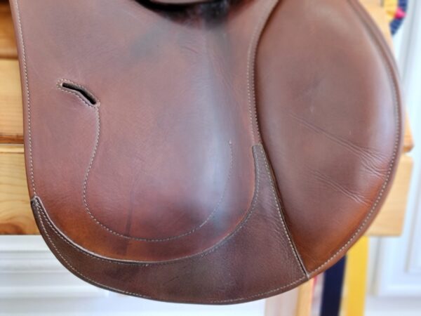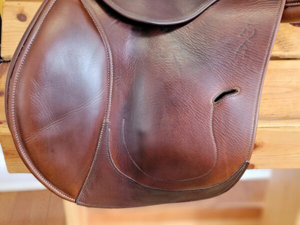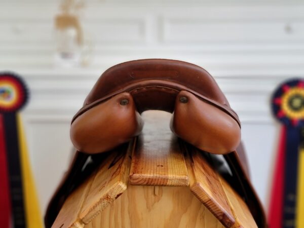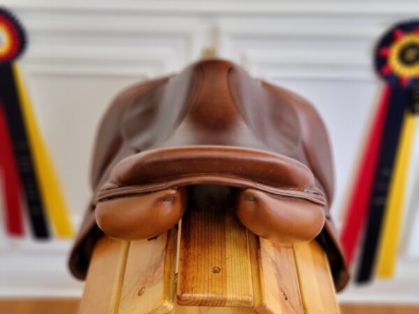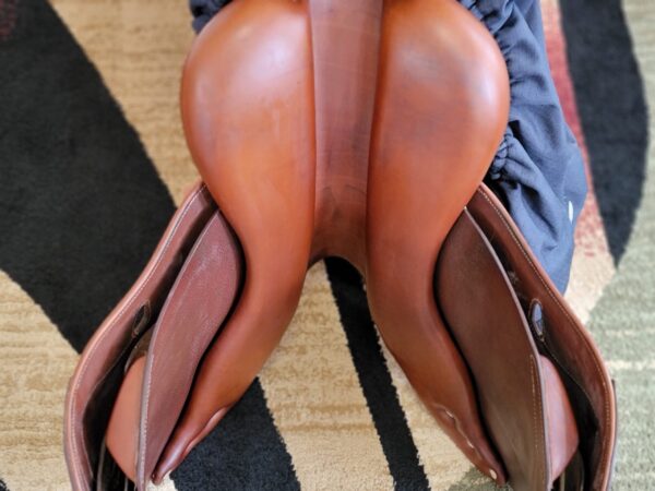 Wonderful 17″ Antares featuring sticky, grippy FULL calf leather. Generous 4.75″ tree. Regular, not too forward flaps measure 13.5″ long x 13.5″ wide and feature front and rear blocks. Grippy, comfy and secure.