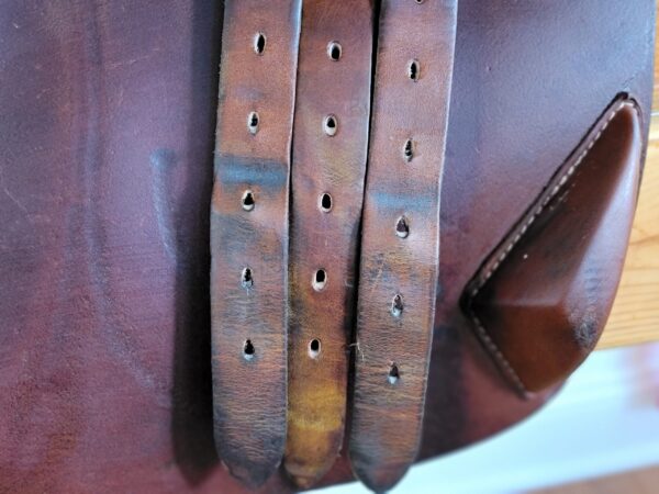 This awesome saddle sells with an Antares saddle cover, a size 50″ leather girth with elastic at one end in excellent condition, Toulouse, calf, lined leathers in fair condition and black, composite stirrups with non-slip grippers in great condition.