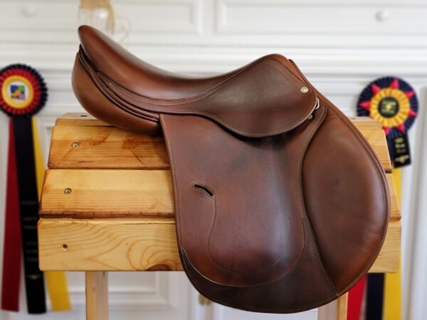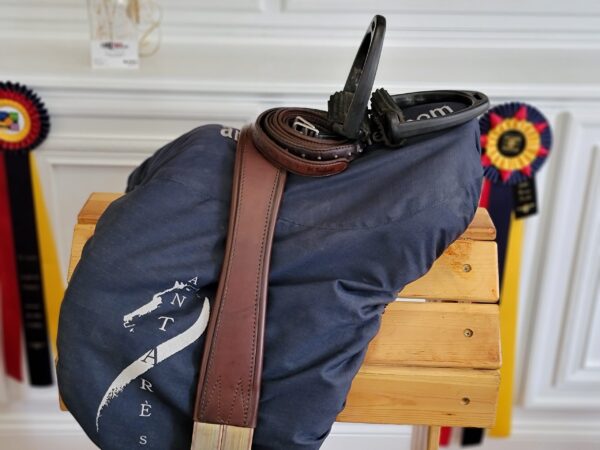 From the Antares website: The Antarès jump saddle is designed for the the sport, integrating all the technology and performance asked for by the top riders. Soft leather coupled with a design which offers a perfect comfort to the horse as well as the rider. When well-maintained, an Antarès saddle will last a lifetime.