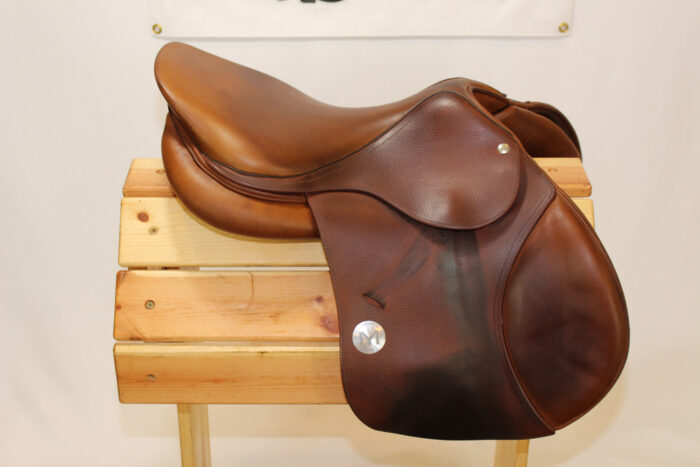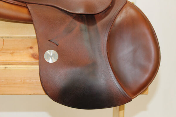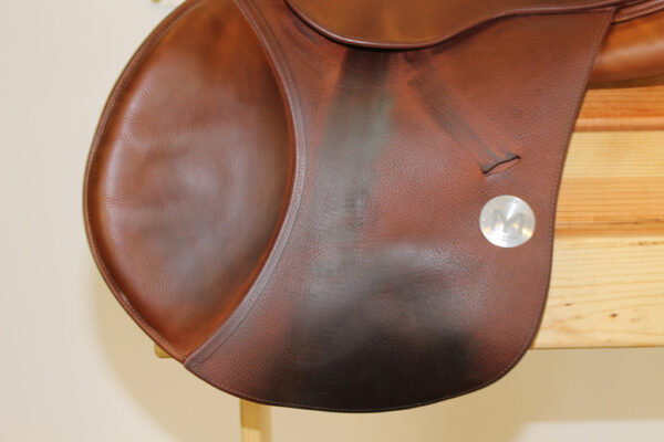 If you have ever laid eyes on a Meyer saddle in person, you just know that it oozes ‘high-end French saddle’ ..It is SO beautifully broken in, soft and grippy. This beauty is a 2013 17.5″ with regular flaps and a 4.5″ tree – perfect for the horse with big shoulders! The quality of this saddle is comparable to all of the high-end French saddles (or better) and is EXTREMELY comfortable! The flaps measure 13.25″ long x 14″ wide. This saddle features nicely sized front and rear blocks AKA you aren’t going anywhere! Sells with Meyer, lined cover. Serial number is 312 13 169. rachel@iselltack.com
