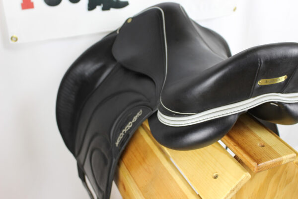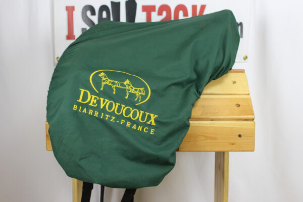 PRISTINE, full buffalo, 2014 Devoucoux Loreak saddle with a 18″ seat and a regular 4.5″ tree featuring long flaps measuring 16.25″ long by 14″ wide. This is a gorgeous saddle in excellent condition. Comes with D3D technology. These panels are made to fit a lot of horses! An exceptional saddle that is functional as well as secure. Grippy and comfortable! Trial available! Serial number 14 S28003905. Price $5,275. Sells with lined, Devoucoux saddle cover. rachel@iselltack.com.